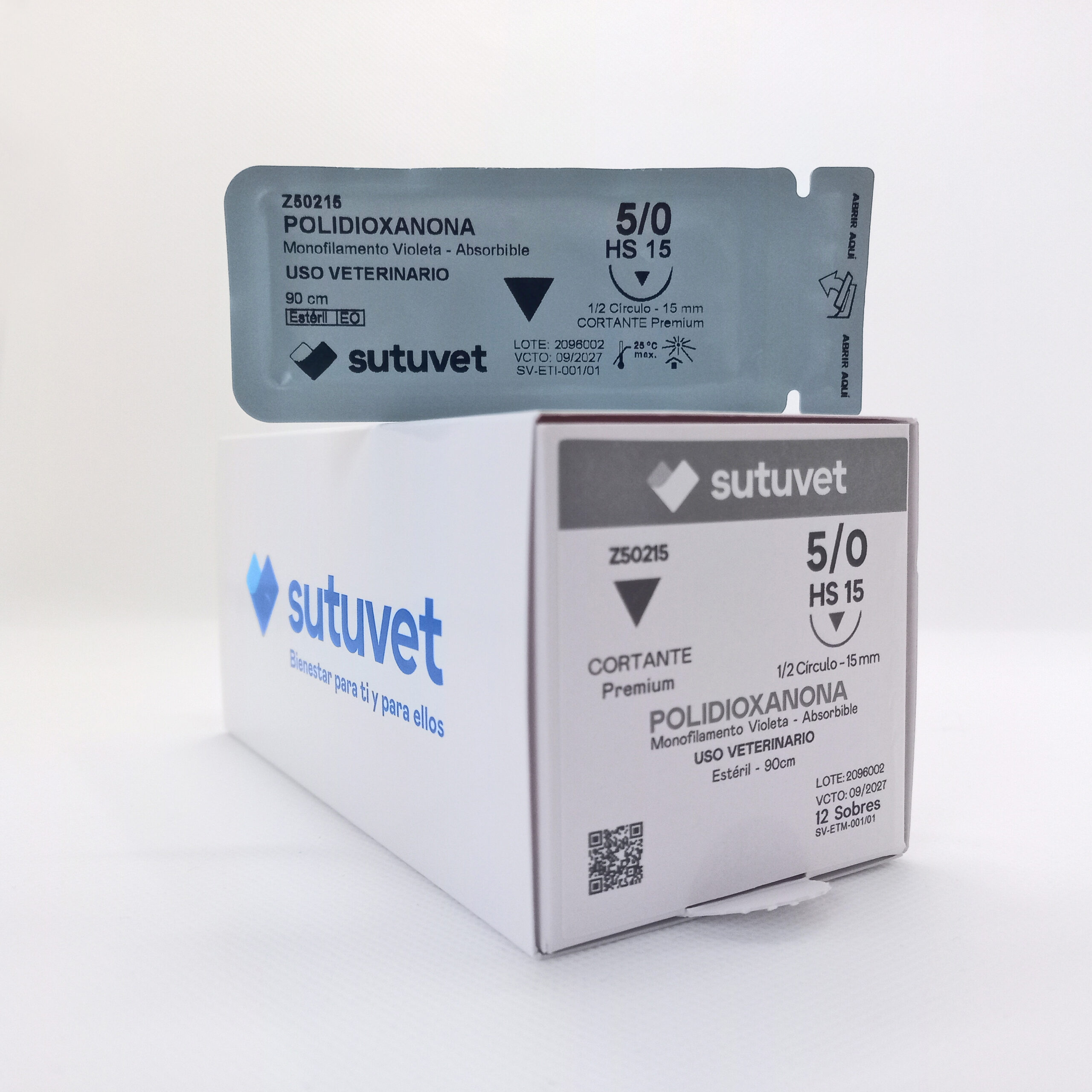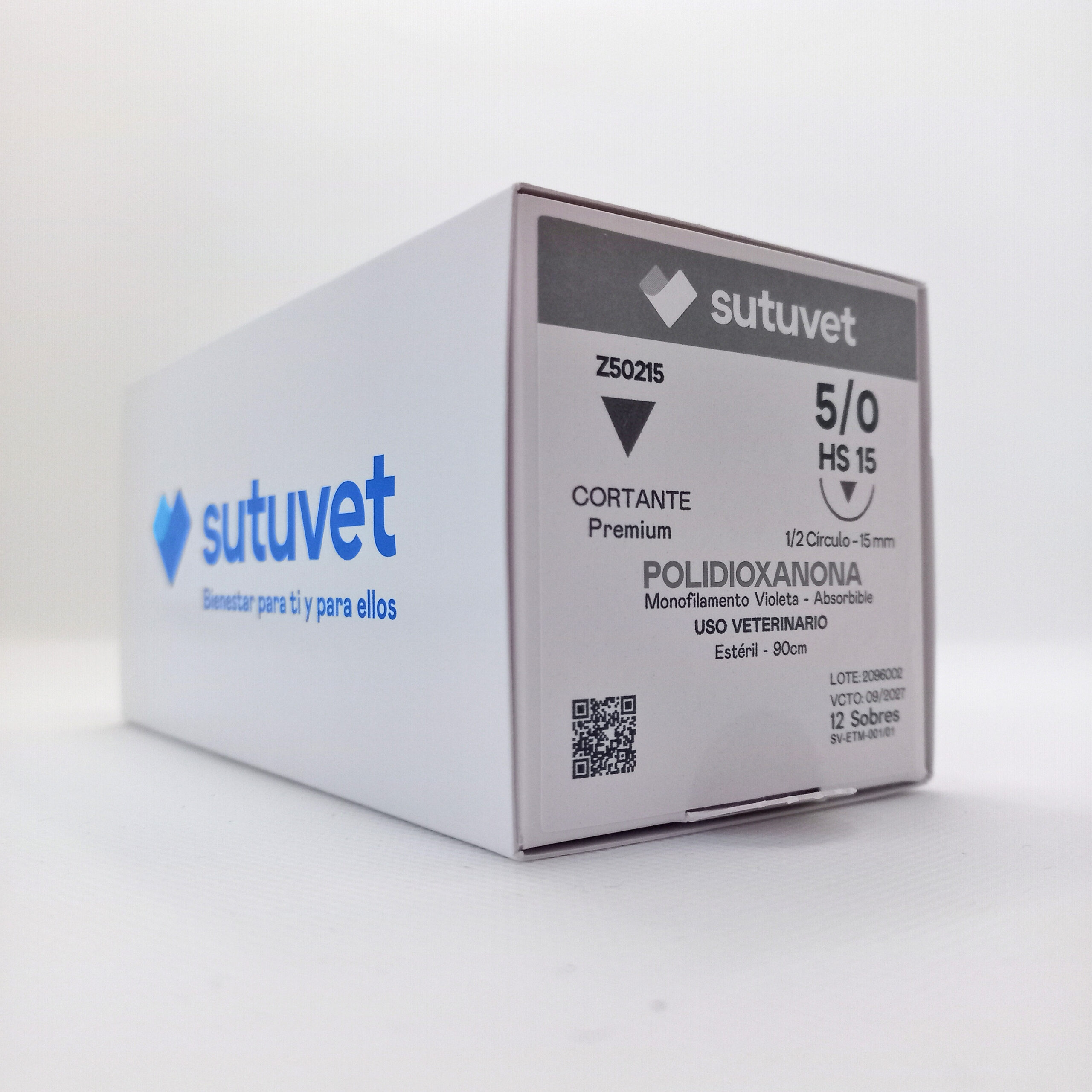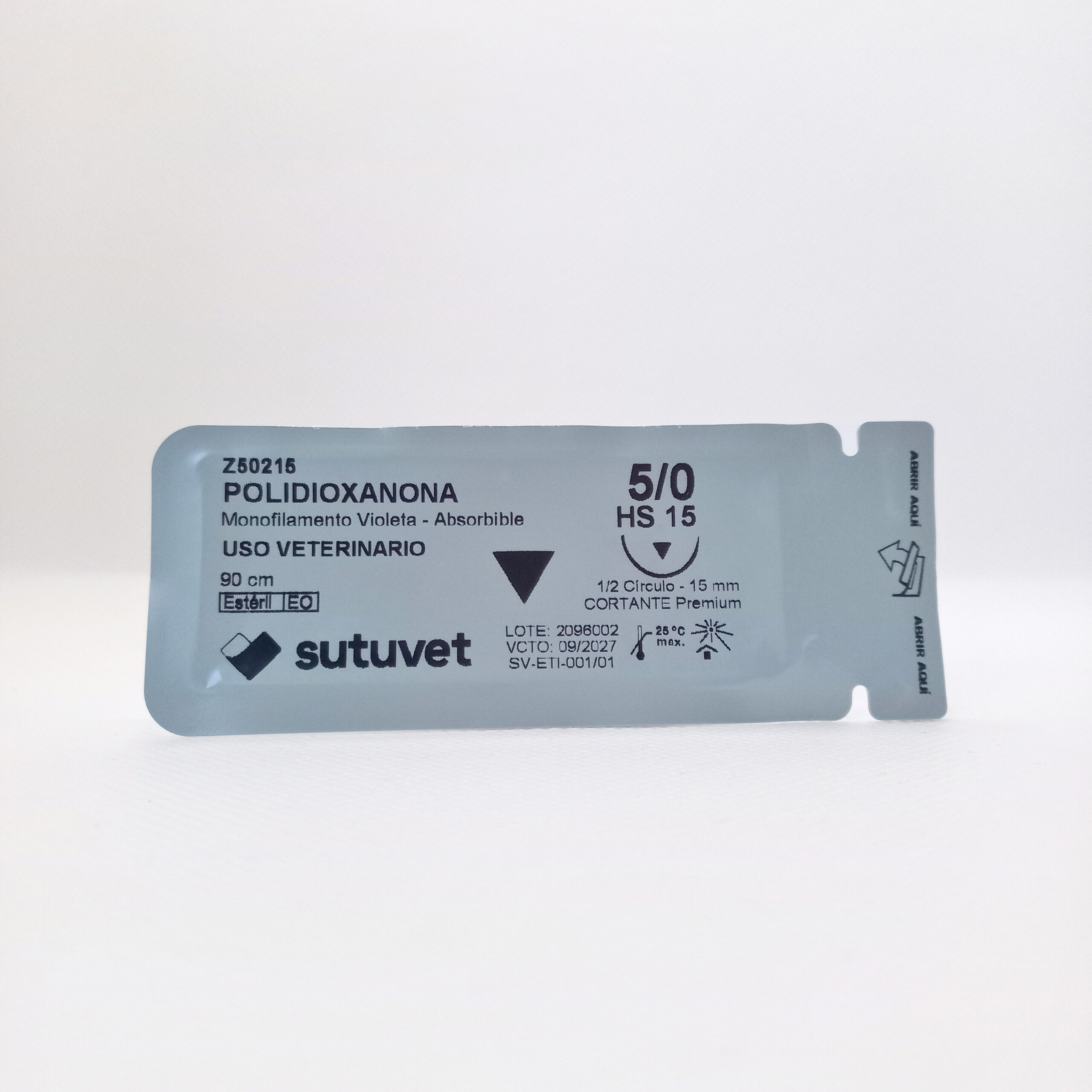 Sutuvet Colombia. Distribuidor exclusivo para Colombia, LANR Distribuciones. Sutura Monofilamento Absorbible de Polidioxanona, calibre 5/0, longitud de 90cm con aguja curva, medio circulo de 15 mm, punta traumática. Tiempo de absorción 120-180 días.