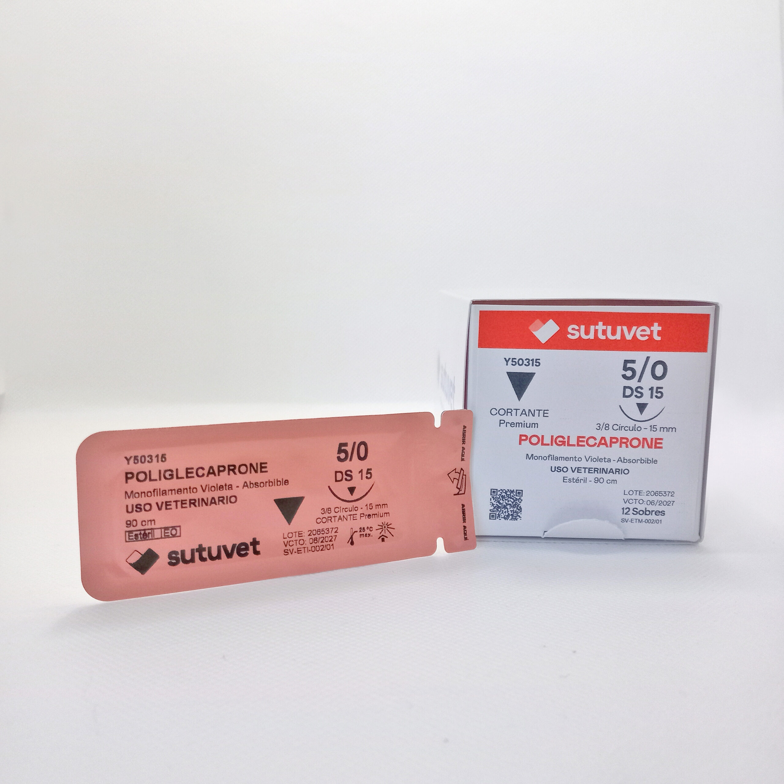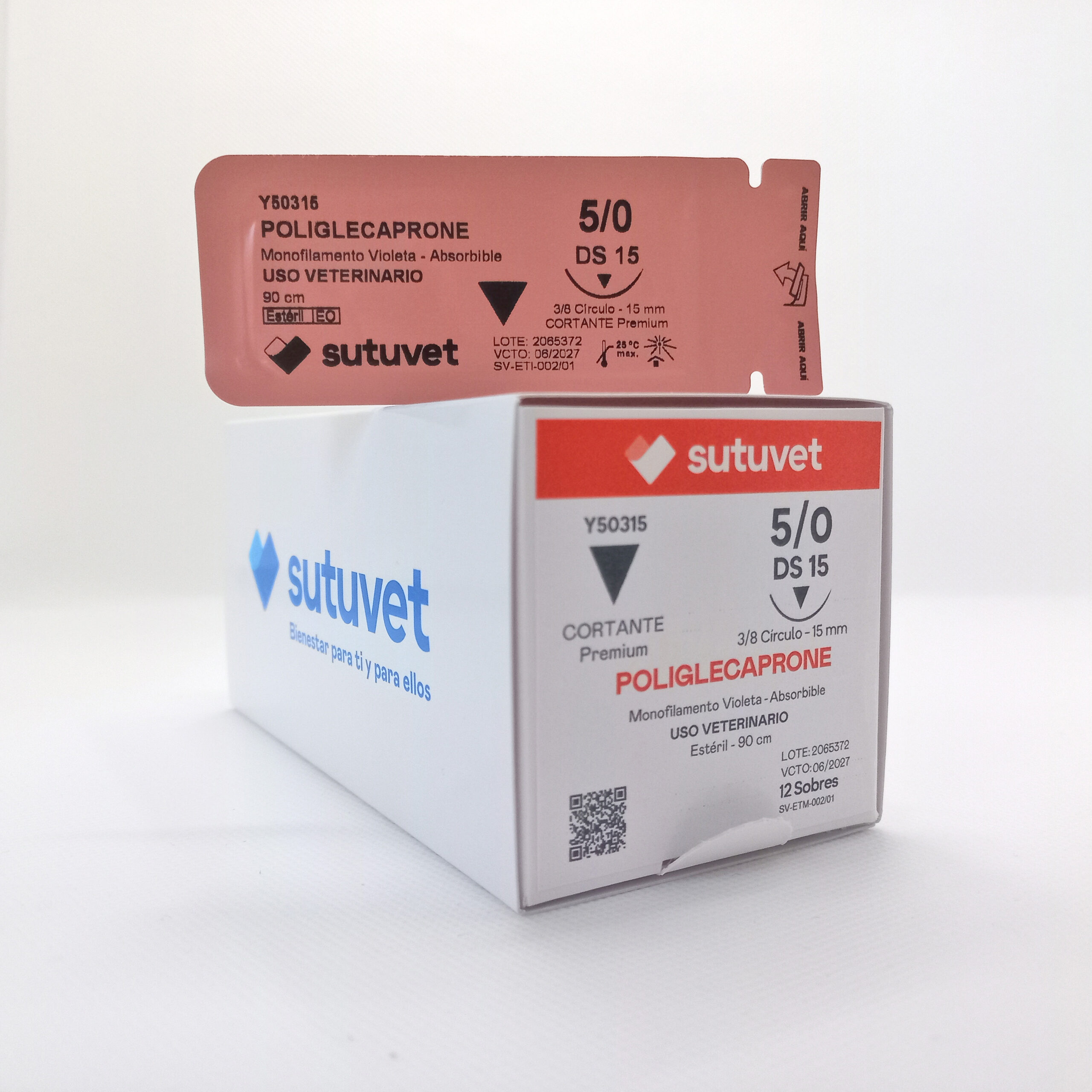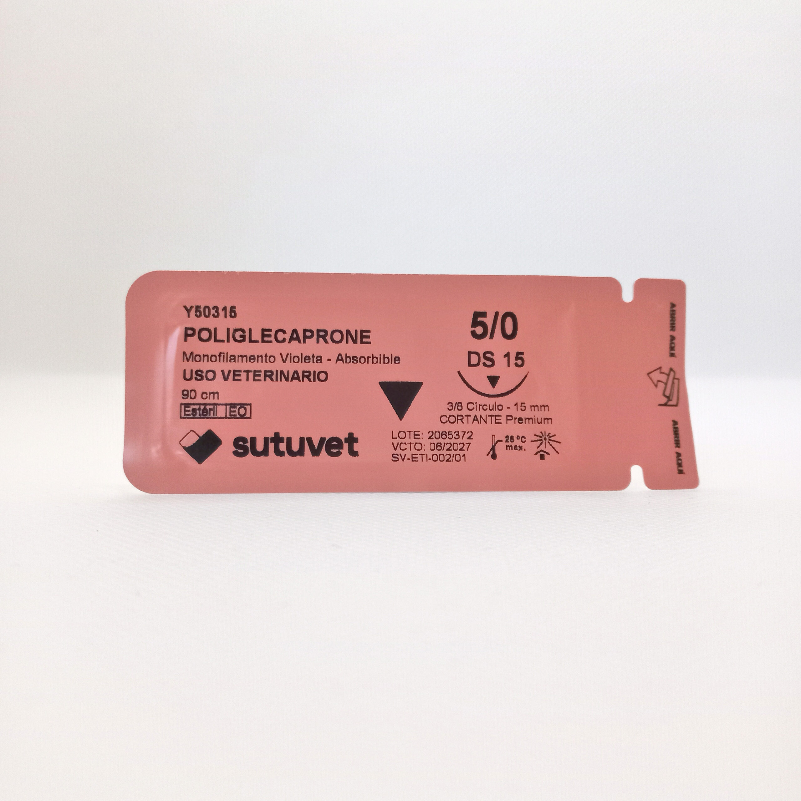 Sutuvet Colombia. Distribuidor exclusivo para Colombia, LANR Distribuciones. Sutura Monofilamento Absorbible de Poliglecaprone, calibre 5/0, longitud de 90cm con aguja curva, 3/8 de circulo de 15 mm, punta traumática. Tiempo de absorción 60-90 días.